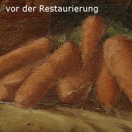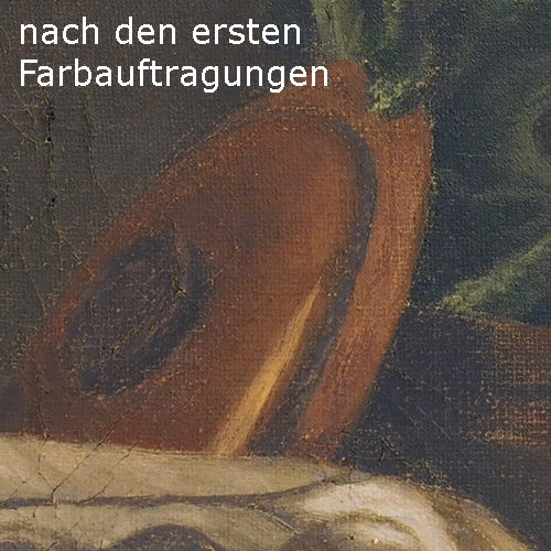 Was hat mich eigentlich auf die verrückte Idee gebracht, mich als Pastellmaler mit der Restauration eines Ölbildes zu beschäftigen? Antwort: eine einfache Überlegung: Pastellpigmente + Leinöl = Ölfarbe. Bei einem minimalen Anteil von Bindemittel besteht die Pastellfarbe fast ausschließlich aus reinen Pigmenten. Mit einer gründlichen Beimischung von Leinöl lässt somit eine ebenso große Palette an Ölfarben herstellen.