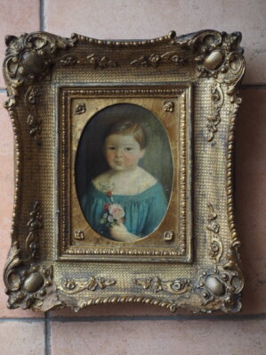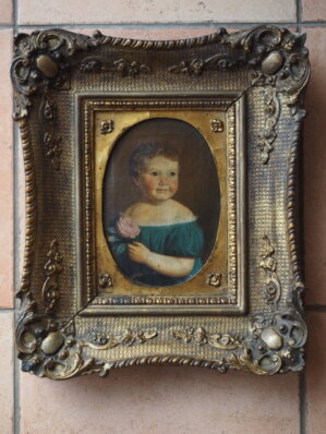 Zwei kleine Kinderportraits (Ölbilder, nicht signiert) im Barockrahmen