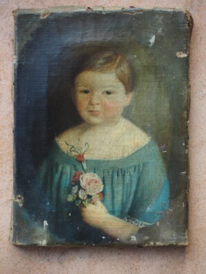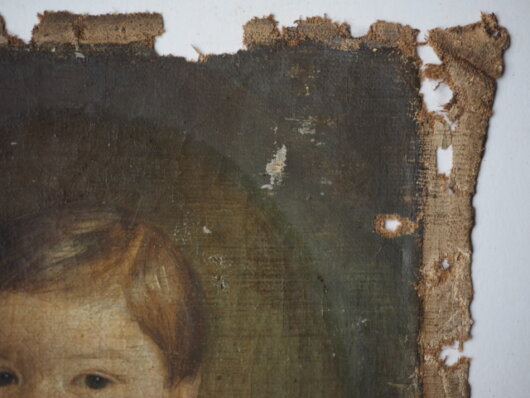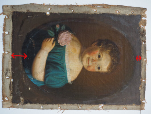 Portrait für einen größeren ovalären Rahmen geplant hatte (der Arm des Kindes