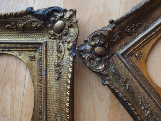 Des Weiteren ist erwähnenswert, dass die beiden Portraits nicht eindeutig für die hier vorliegenden Rahmen gedacht waren. Die beiden Ölbilder haben unterschiedliche Maße und wurden zur optimalen Platzierung in den ovalen Ausschnitt sehr asymmetrisch eingebracht. So wurde die Rahmenfalz an der Unterseite deutlich vergrößert. Der ovaläre Abdruck auf dem Bild ist nicht mittig platziert.