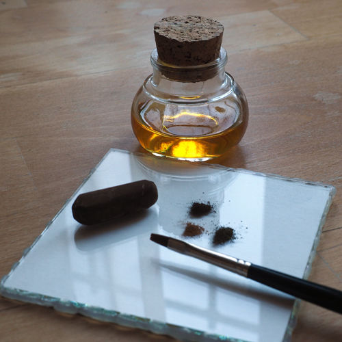 Was hat mich eigentlich auf die verrückte Idee gebracht, mich als Pastellmaler mit der Restauration eines Ölbildes zu beschäftigen? Antwort: eine einfache Überlegung: Pastellpigmente + Leinöl = Ölfarbe. Bei einem minimalen Anteil von Bindemittel besteht die Pastellfarbe fast ausschließlich aus reinen Pigmenten. Mit einer gründlichen Beimischung von Leinöl lässt somit eine ebenso große Palette an Ölfarben herstellen.