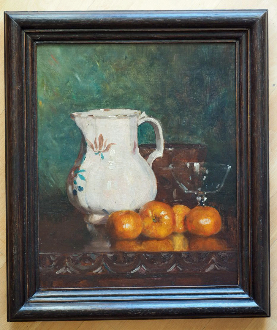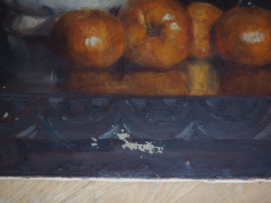 Restauration eines Stilllebens von M.C.G. mit altem Eichenrahmen