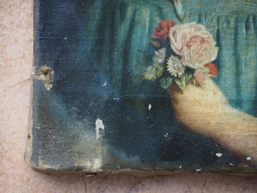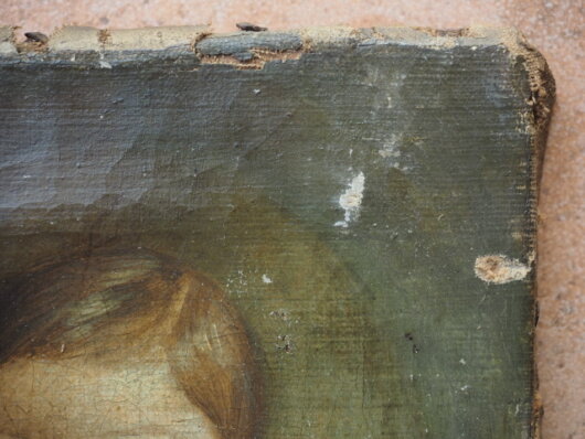 kleinen Stellen ist es zur Abplatzung von Ölfarbe gekommen. Diese Bereiche