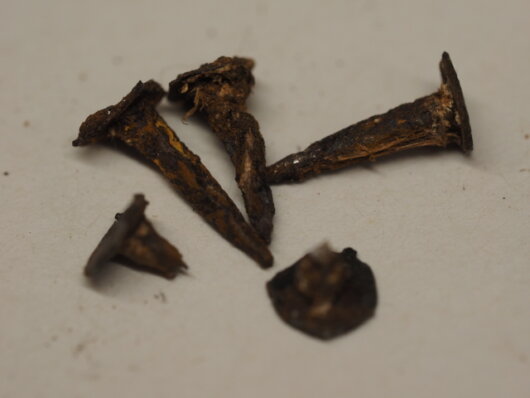 alle sehr rostig und die meisten brechen beim Entfernen. Die Form der Nägel lässt